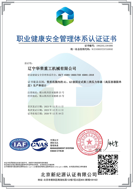 職業(yè)健康安全管理體系認證證書