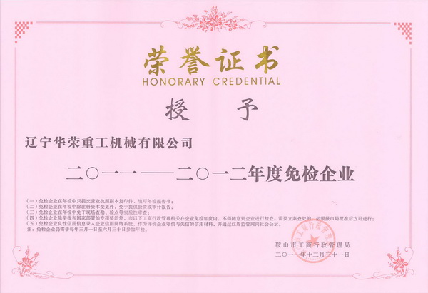 工商局免檢企業(yè)證書