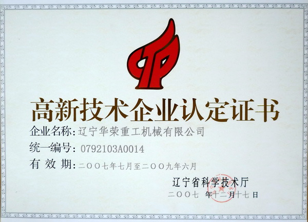 高新技術企業(yè)認定書